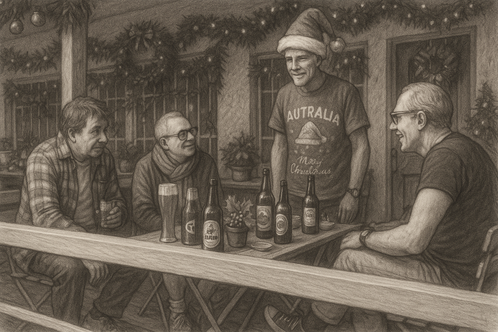 Berühmt sind Alexis sonntäglichen Duelle mit Tony, unserem Vorzeige-Australier. Same time, same place – und Tony ist immer „Heim“. Die Spiele sind geprägt von hoher emotionaler Intensität. Man kann förmlich sehen, wie es unter Tonys Motorhaube kocht. Alexis kühlt mit griechisch-fränkischer Entspanntheit. Unabhängig vom Spielausgang rauchen sie danach eine Friedenspfeife im Australier-Biergarten, den Delio liebevoll ausgeschildert hat.