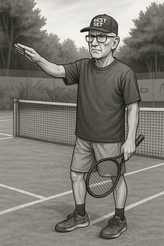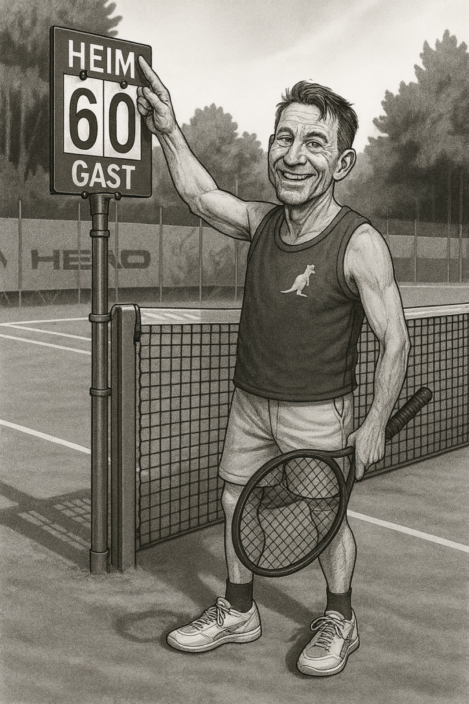 Alle Experten sind sich einig, dass Michi tennistechnisch das Zeug hätte, dauerhaft die Senioren von Platz 1 zu verdrängen. Aber der mentale Druck der Tribüne bringt ihn immer wieder mal aus der Fassung. Mit nur einem kleinen Schuss der Maddinschen Gelassenheit würde er die meisten Gegner vom Platz schießen. Selbst Alexis, der sich im Spätsommer 2025 für unbesiegbar erklärte – in einer Art Reminiszenz an seine griechischen Wurzeln und Alexander den Großen. Wobei der Expertenrat Alexis Alleinstellung eher seinem neuen Tenniskoffer zuschreibt. Damit trat Alexis übrigens in die – kleinen – Fußstapfen der Ramersdorf-Legende Manfred Wambsganss.