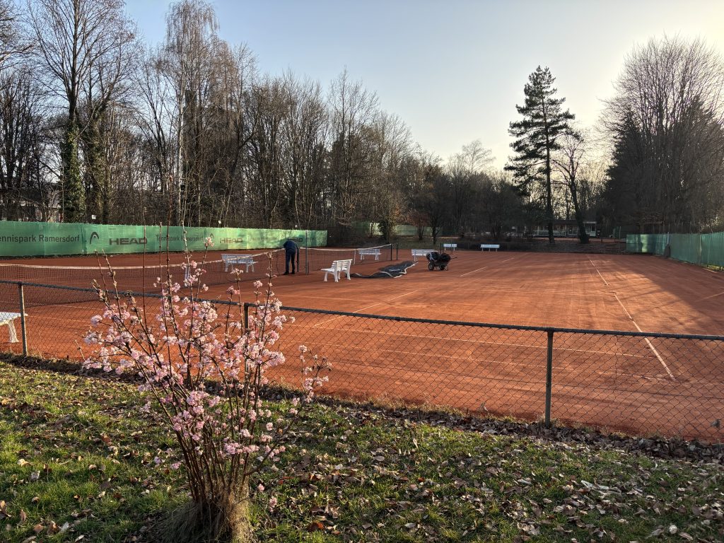 Am 7. März war es soweit: Als einer der ersten Anlagen der nördlichen Hemisphäre – wenn nicht sogar ganz Altbayerns – meldete der TC Ramersdorf: Wir sind spielbereit! Um 10 Uhr eröffneten Thomas und Christian tänzelnd und unter Begleitung der summenden Putzmaschine die neue Saison. Sie verlangten Platz 2 gleich mal die erste Bewährungsprobe ab: Wenn Christians Slice sich nicht in den Boden eingraben würde, wäre die erste Hürde genommen.