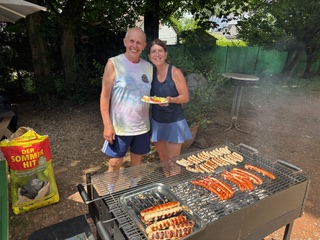 Bei Natascha Schmidt, die Chefin der Anlage, liegen die Fäden und die Ergebnisse zusammen. Drei Vorrundenspiele, ein Halbfinale und ein Finale machten den Weg zum Sieg zu einer wahren Hitzeschlacht. Aber selbst bei den härtesten Turnieren bleiben am Ende die Sieger übrig. Sie durften sich freuen über… Trainerstunden:)! Feiern durften dann alle. Die anfänglichen Kalorienverluste wurden aufgefangen mit kühlen Getränken, Kuchen, Salat und Hans Wittmanns Schweinereien vom Grill.