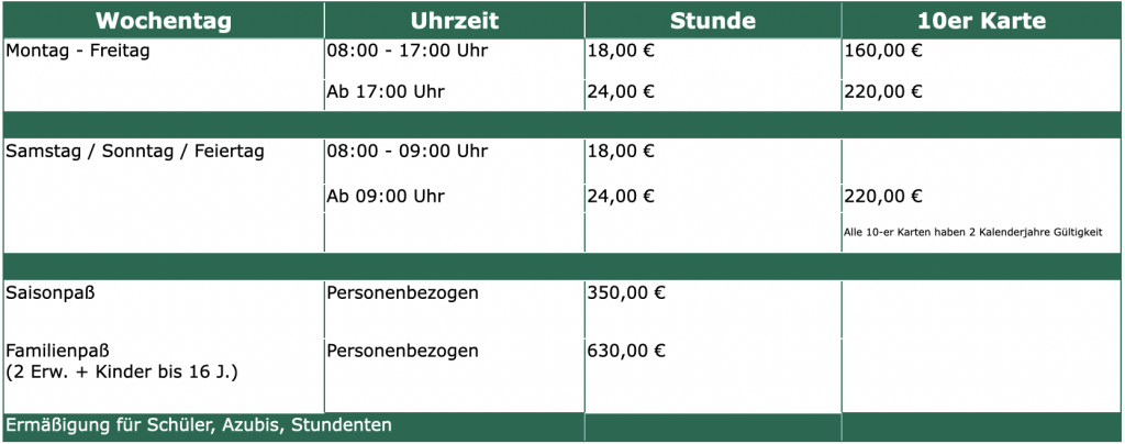 Platz buchen für die Termine ab 17h täglich und am Wochenende telefonisch unter 089 687 275.